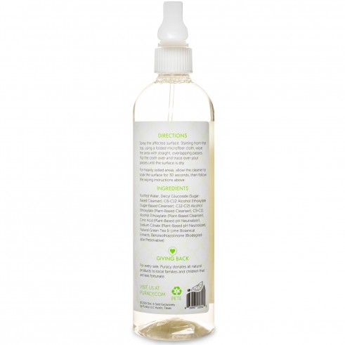Puracy Natural Multi-Surface Cleaner is a non-toxic, effective, and versatile cleanser made from plants, water, and a hint of green tea & lime. The biodegradable ingredients were carefully chosen and developed into a premium, streakless solution. The proprietary formula is safe to use around your family and free from harsh chemicals and fumes. This is a true all-purpose, every-surface cleaner; effective enough to clean a bathroom, safe enough to clean a high chair, and pure enough to clean glass.