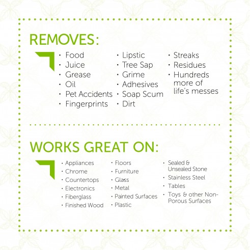 - CREATED BY DOCTORS: Developed & Tested by PhDs, the plant-based formula effectively removes food, soda, juice, grease, oil, sugar, pet accidents, fingerprints, footprints, lipstick, tree sap, grime, adhesives, soap scum, dirt, spills, streaks, residues, and hundreds more of life's messes