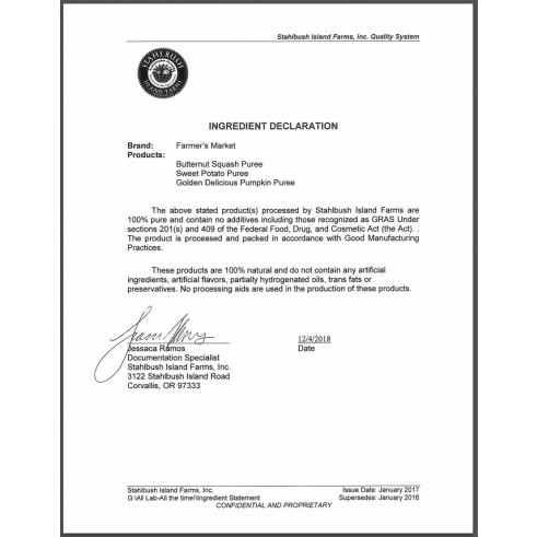 Farmer’s Market Organic Pumpkin is rich, smooth and nutritious. Pumpkin is one of the most versatile vegetables. It can replace oil, butter and even eggs in recipes. To thicken a sauce or soup naturally, add a little pumpkin. It’s unique flavor and health properties make it a fall necessity. However, its ability to make any recipe adaptable makes it a year-round staple. Our pumpkins are a special variety that we’ve been cultivating for years. You can’t find this variety anywhere else!